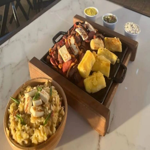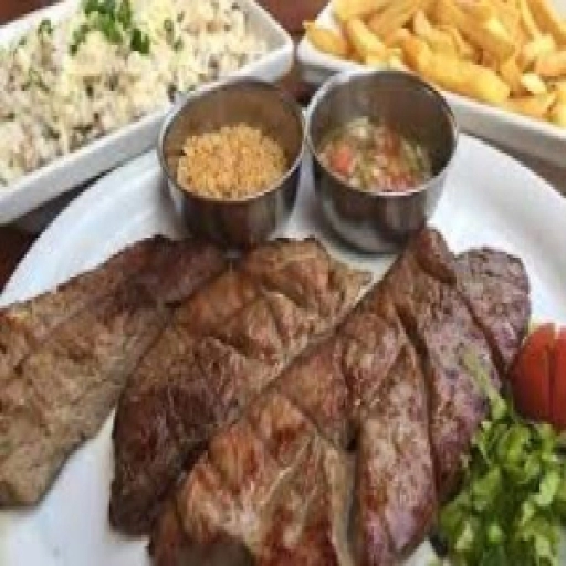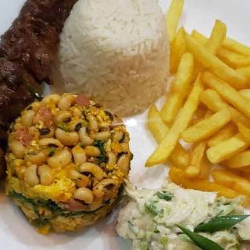 150 g de Carne de sol na brasa, baião cremoso, batata frita, vinagrete e farofa.