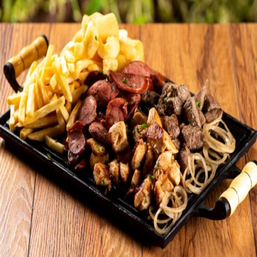 380g de Maminha, Calabresa, Filé de frango, batata frita e molho da casa.