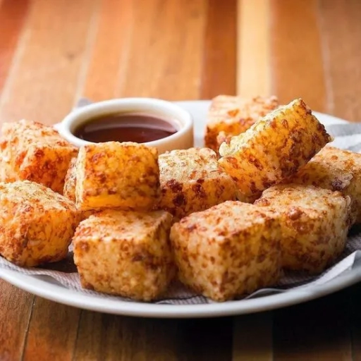 10 unidades de Dadinho de tapioca, acompanhado com a Geléia de Abacaxi apimentada.