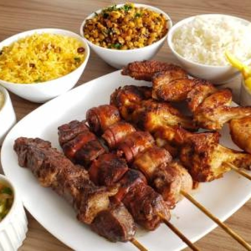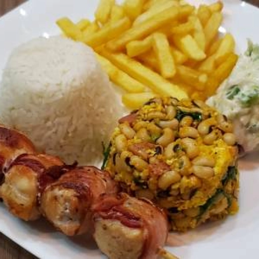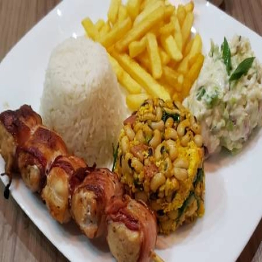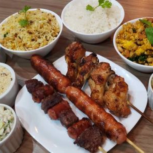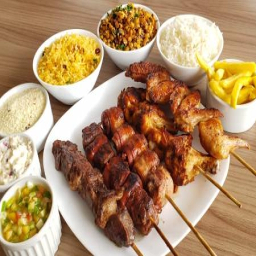 5 Espetos a sua escolha, Tradicional e Premium, acompanhado de arroz, baião, feijão tropeiro, maionese, vinagrete, bat... Ver completo