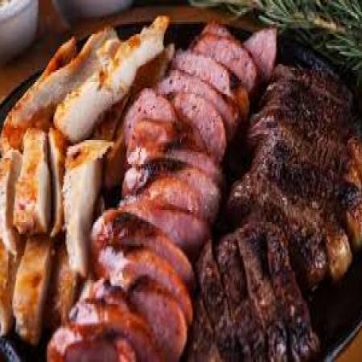 100gr de Maminha, 50gr Filé de Frango, 50gr Calabresa, grelhados na chapa e servido com as guarnições a sua escolha.