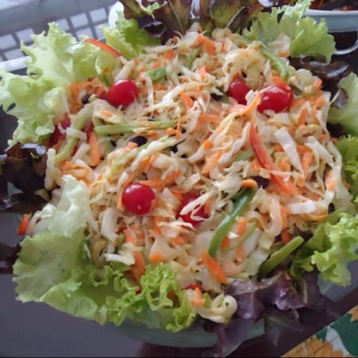 200g de Filé de frango grelhado com legumes (repolhos e pimentões) acompanhado de arroz e salada crua.