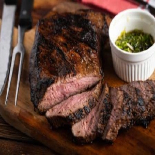 150 g de Maminha, assada na brasa, acompanhada de arroz ou baião, salada a escolha, feijão tropeiro e batata frita.